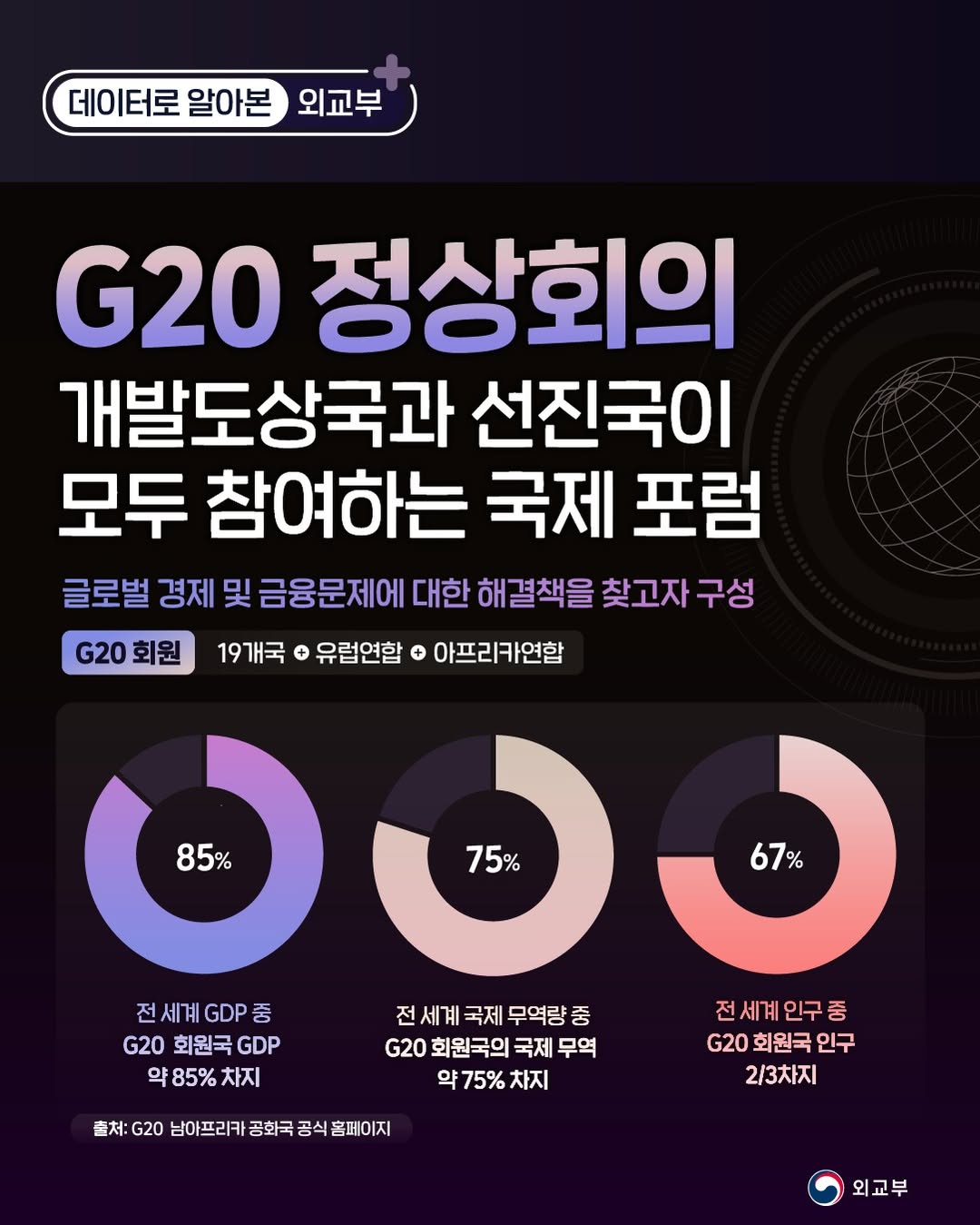 - G20 정상회의 출범 20주년(2028년) G20 의장국 수임 확정으로 우리의 글로벌 경제선도국 입지 강화